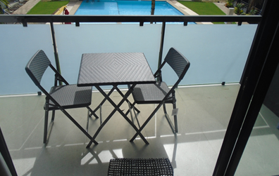 - Private balcony with table and chairs